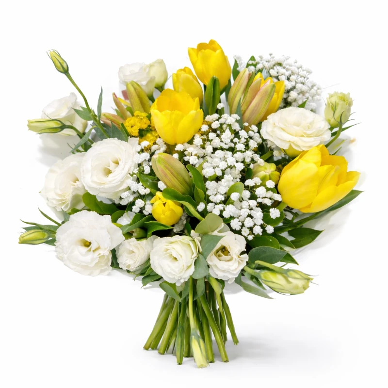 זר YELLOW TULIP מלא אור ושמחה, בעיצוב נקי ורענן.