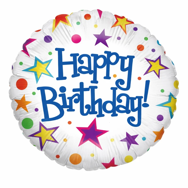 בלון יום הולדת שמח צבעוני מיילר מתכתי 18 אינץ’ (משתנה לפי מלאי החנות)